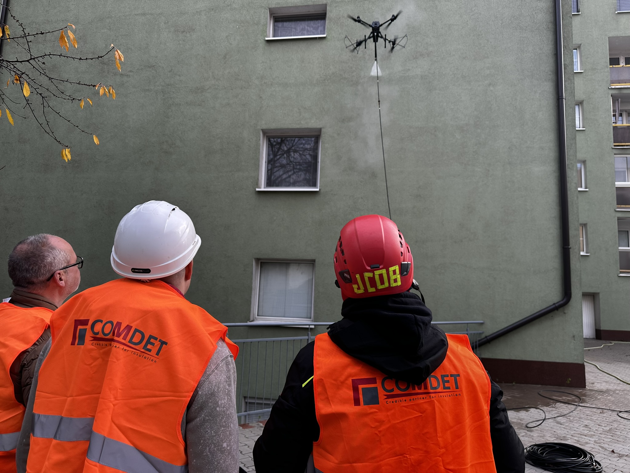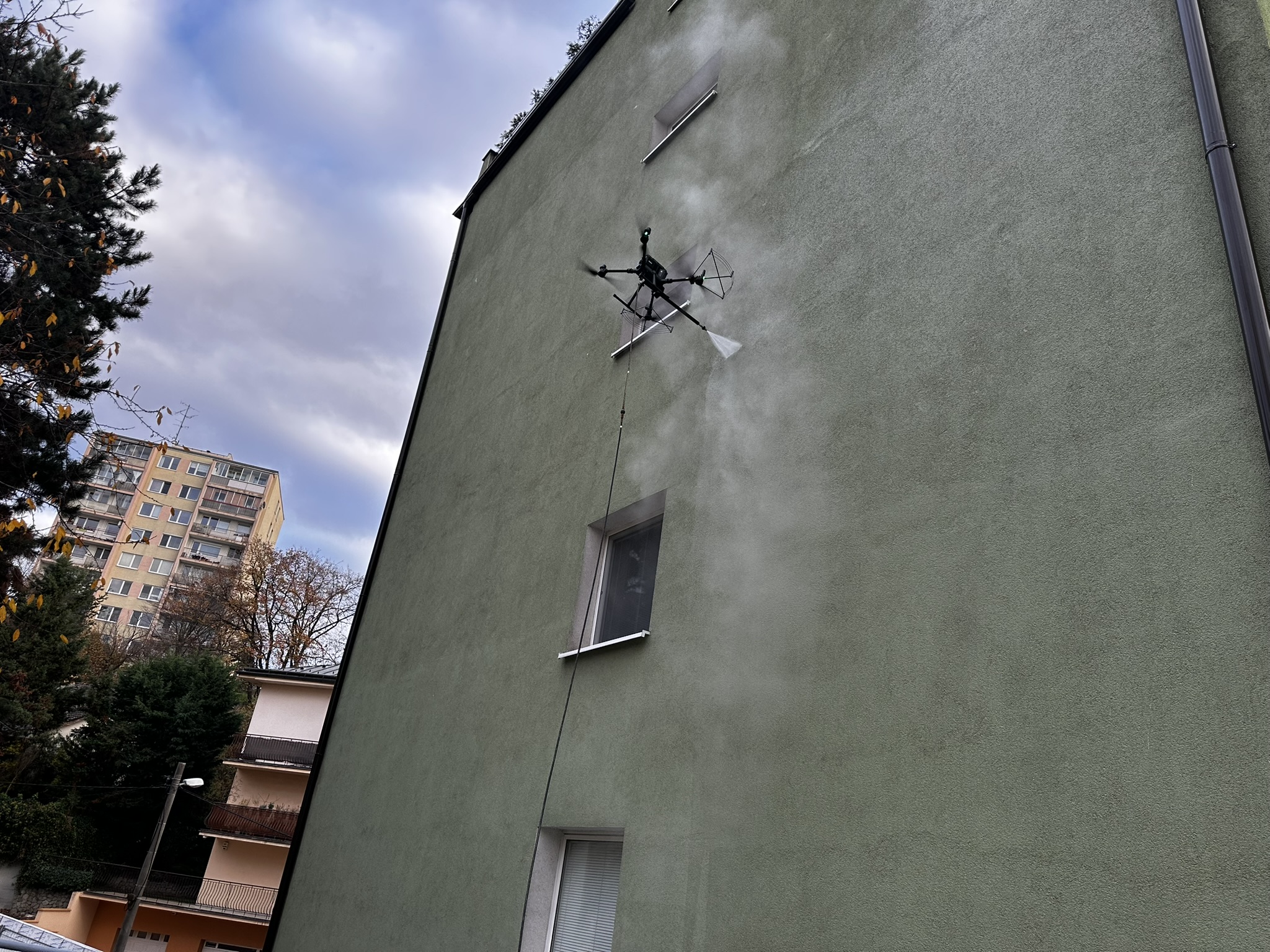 Čistenie dronom je rýchle, bezpečné a eliminuje potrebu stavby nákladného lešenia či využitia vysokozdvižných plošín.